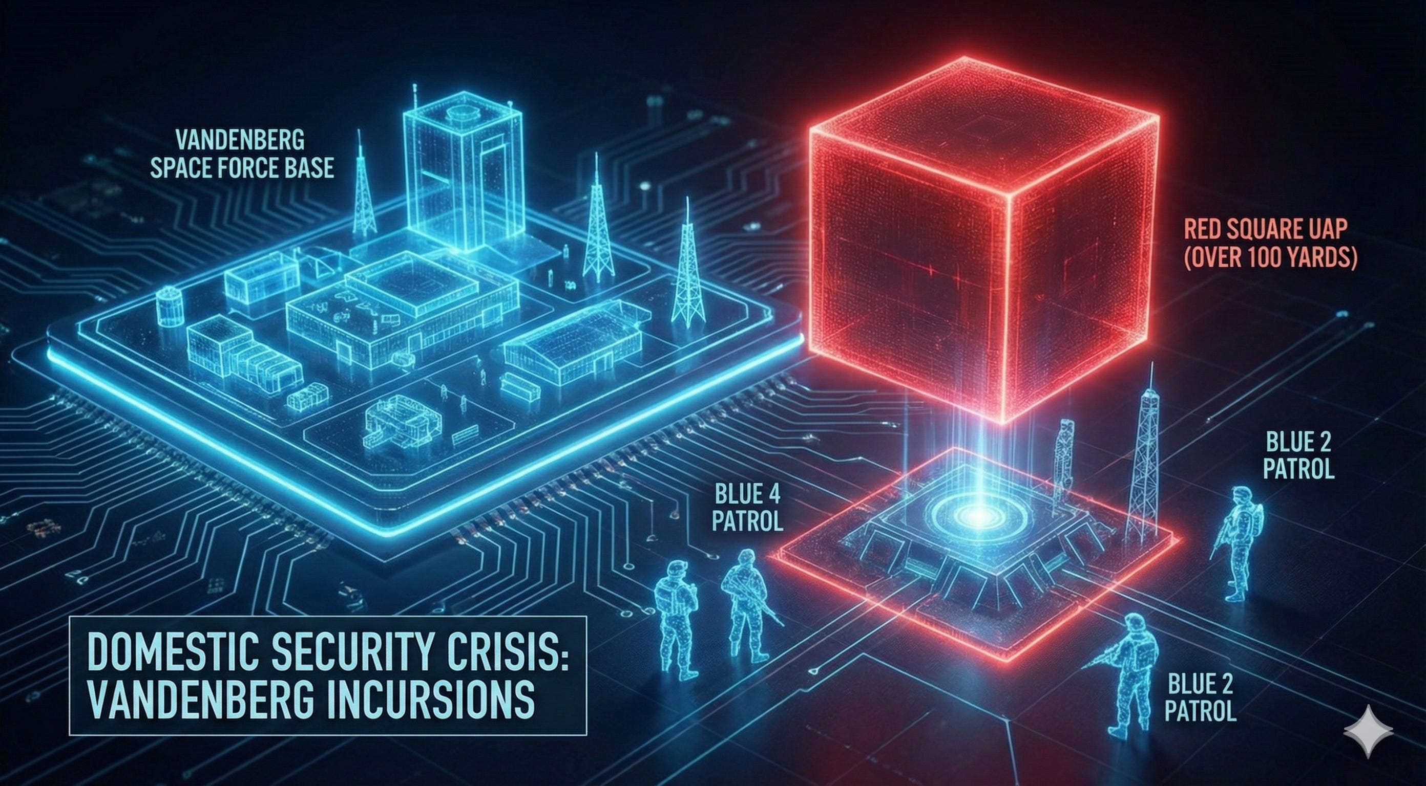 The Domestic Security Crisis: Reports of structured UAP incursions over nuclear-capable sites, specifically Vandenberg Space Force Base, supported by radar data and military witness testimony.[5]