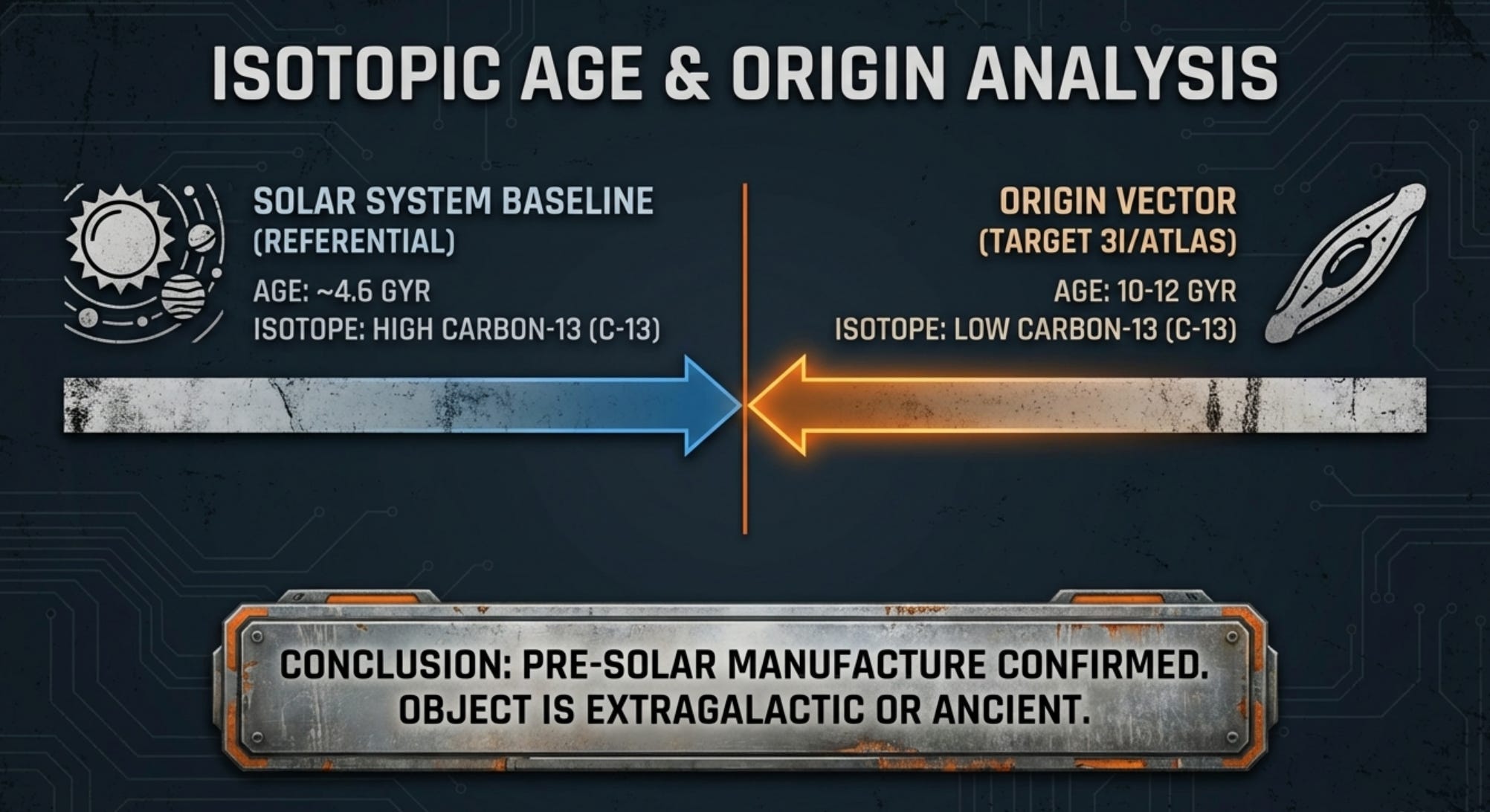 3I’s building blocks are 10 to 12 billion years old. The deuterium timestamp reads ten times above anything in our solar system. The carbon and nitrogen ratios point to a metal-poor environment that has not existed in our galactic neighborhood for billions of years. Two teams. Two continents. Two instruments. Two different molecules. Same answer.